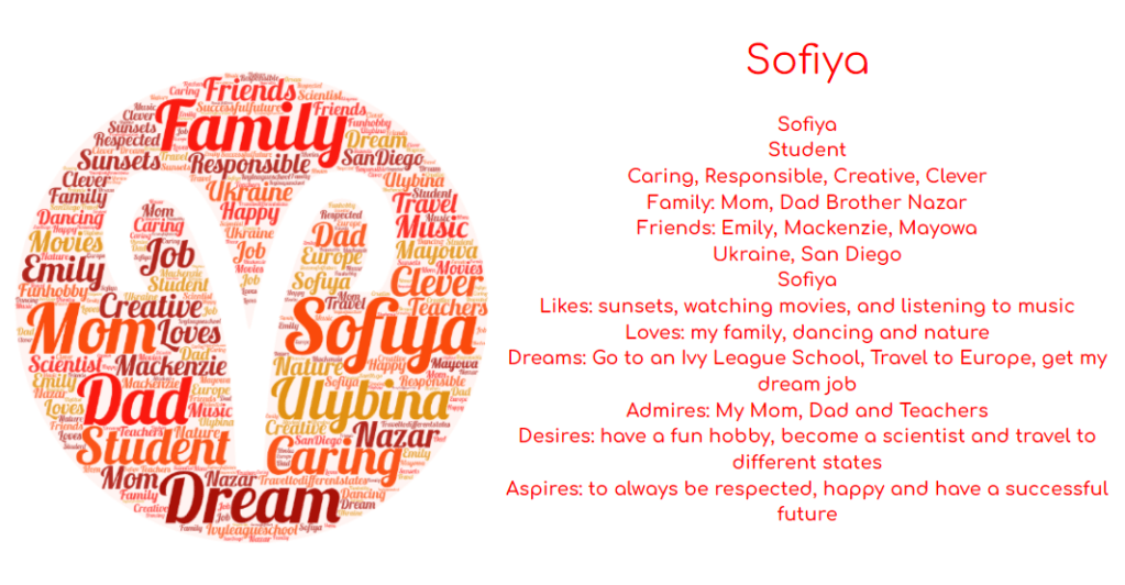 - Looking at these words (give word bank), which are the top three you feel best describes ___________?